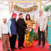 The Consul of India to Chiang Mai Shirish Jain and his wife Rajni Basumatary welcomed guests to the 73rd Indian Independence Day at the Indian Consulate Chiang Mai.
