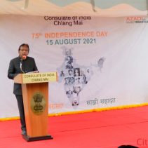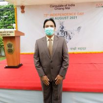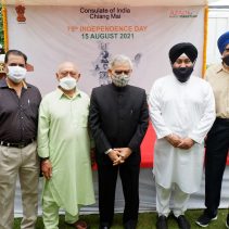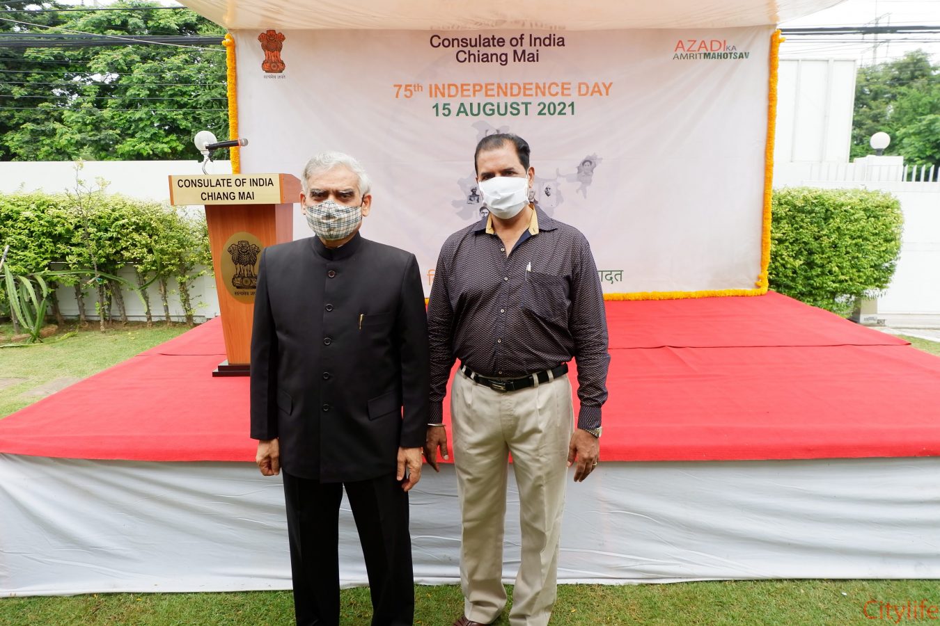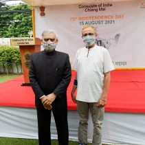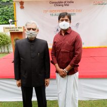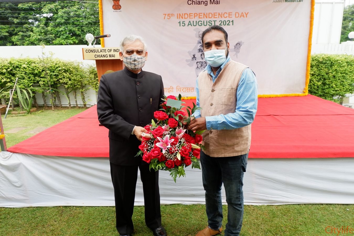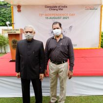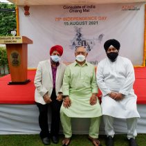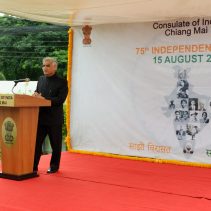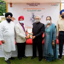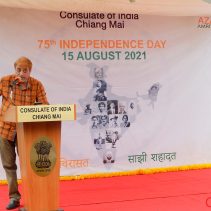 The Indian Consul, Krishna Chaitanya welcomed guests for the 75th Independence Day celebrations at the Consulate of India Chiang Mai. The Consulate provided refreshments for participants from Accha Authentic Indian Cuisine.