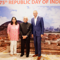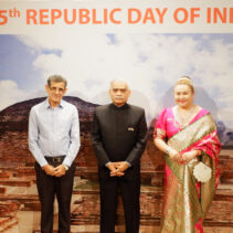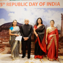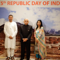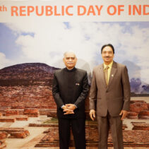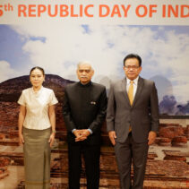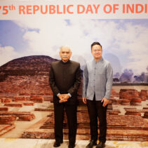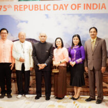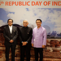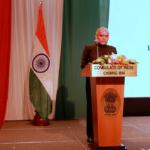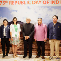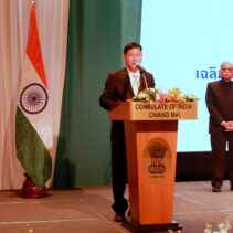 In celebration of the 75th Republic Day of India, the Consulate of India hosted a well attended reception at Marriott Chiangmai. Commander of 33rd Military Circle Major General Teera Padungsoonthorn was the chief guest while Vice Governor of Chiangmai Mr Worawid Chaisawad read out a message of congratulation on behalf of the Governor. Government officials from various provinces, in including the Vice Governors of Chiangmai, Chiangrai, Lampang, Lamphun, Phrae and Tak, members from the Diplomatic Corps, media and academia, trade & business chambers, and professionals from various spheres, including those from the Indian Community attended. In his welcome remarks, Consul Krishna talked about the growth and development in India over the last 75 years since India became a sovereign democratic republic on January 26, 1950 and stated that the Consulate, now in its 53rd year of its functioning in Chiangmai is committed to expanding the relationship of northern Thailand with India. He also talked about the deep imprint of Buddhism on the Constitution of India, the founding document of India’s democratic secular republic and highlighted the connection between the Indian State of Bihar where Lord Buddha attained enlightenment and also gave his last sermon, where the first republic in the world was established in the sixth century BC, and functioned on the basis of Buddhism; where the capital of Maharaj Ashok was located who brought Buddhism to Thailand; and from where Ajarn Jeevak came to Thailand bringing with him the traditional medicine and healing practices. Chiangmai based Indian National and Chiangmai University (CMU) alumni Mrinalini Rai (Tina) from Women for Bio-Diversity made a presentation about her work among hill-tribe women. There was scintillating Indian dance performances by Thayarat Panya, a student of Grade 2 Primary School of Rajaghat University Demonstration School; by Dakshina/Shashi of Bharatavidya Division from Faculty of Humanities of CMU; and by Sneha Mehta and Paula Mazoomdar Nair. Thai artists of Bharat Sangeet Band rendered a couple of Hindi songs popular in Thailand and also a soothing instrumental number. The Consulate displayed many models and banners depicting Nalanda, the first University of the world established 1500 years ago in Bihar; Kesariya, the tallest Stupa in the World; the Bodhgaya temple, the Thai styled temple Metta Buddharam which is also located in Bodhgaya and the Ashoka Stupa at Vaishali.