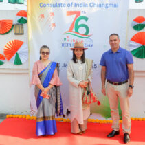 The Consul of India Pranav Ganesh welcomed guests to the Indian Consulate for the 76th Republic Day celebrations