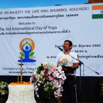 The Indian Consul of Chiang Mai Shirish Jain held the 3rd International Day of Yoga at Thapae Gate, in remembrance of His Majesty The Late King Bhumibol Adulyadej