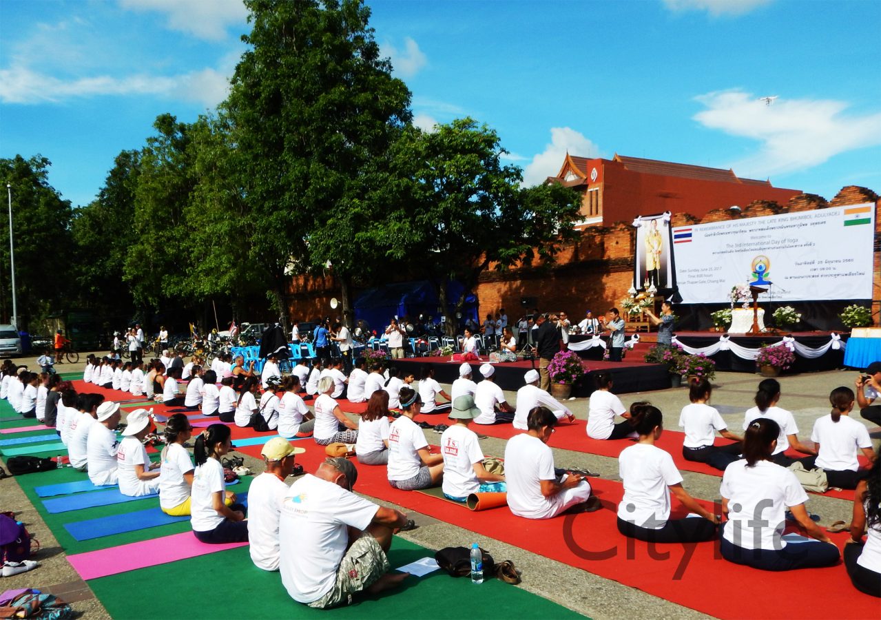 The Indian Consul of Chiang Mai Shirish Jain held the 3rd International Day of Yoga at Thapae Gate, in remembrance of His Majesty The Late King Bhumibol Adulyadej