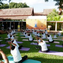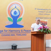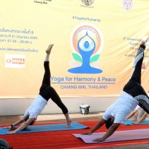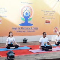 International Yoga Day at Chiangmai Historical Centre. It was part of “Guardian Ring of Yoga” where in International Yoga Day events at iconic locations, progressively from east to west across the world will be telecast live. Organized by the Indian Consulate in Chiang Mai and the Chiang Mai Municipality. The event was lead by Master Jagat Jagatap from Spirit Yoga Studio, attendees included the Mayor of Chiang Mai Assanee Buranupak and Indian Consul Krishna Chaitanya. Refreshments were provided by Chai N Thai Nimman.