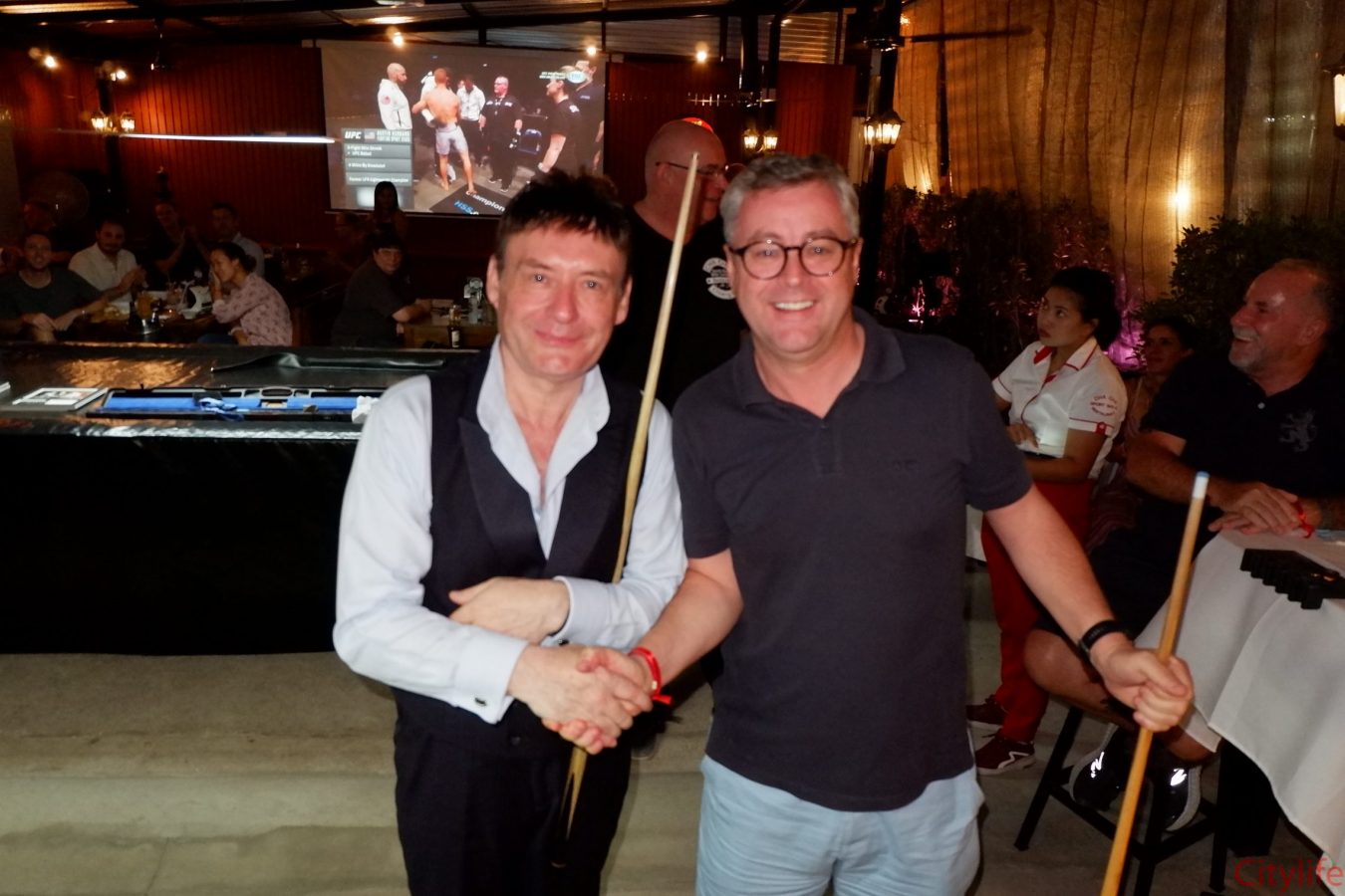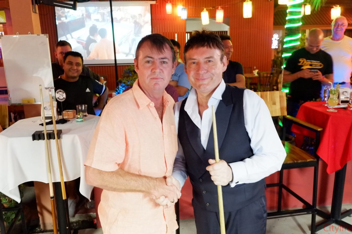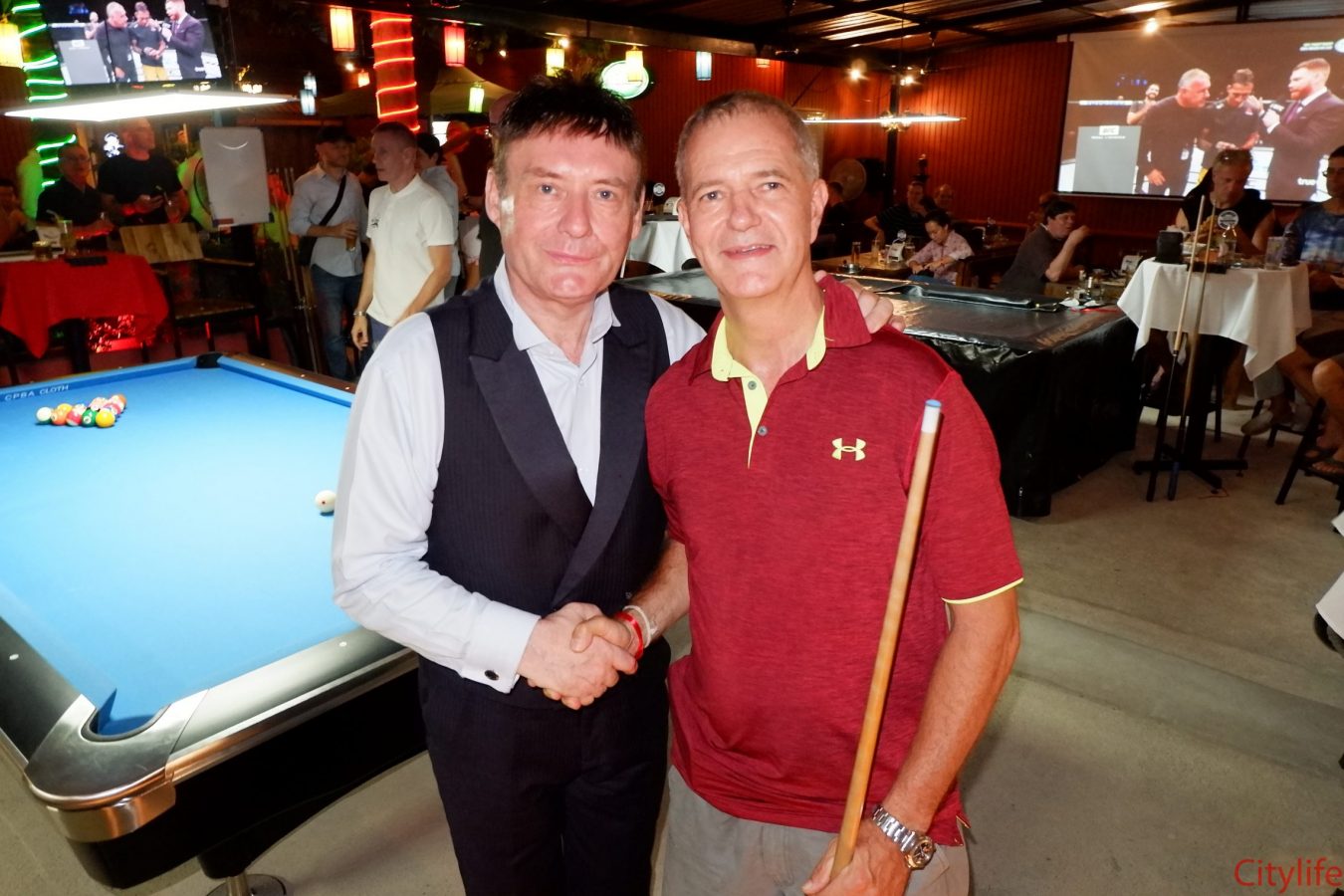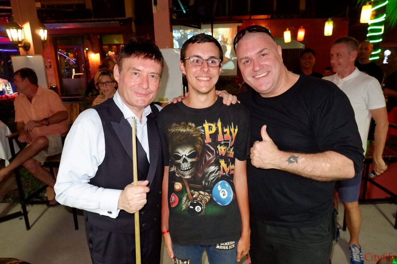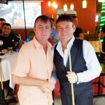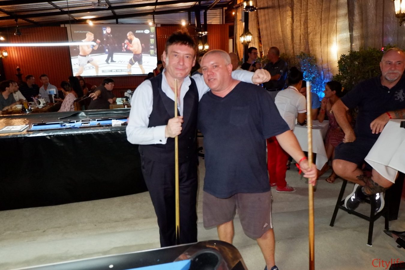 Jimmy ‘The Whirlwind’ White exhibition at Cha Cha Sports Bar & Restaurant. This first of a kind event for Chiang Mai saw 28 local residents got to play against Jimmy White. The event was MC’d by Steve Johnston from Happy Chili Radio Station FM98.5.