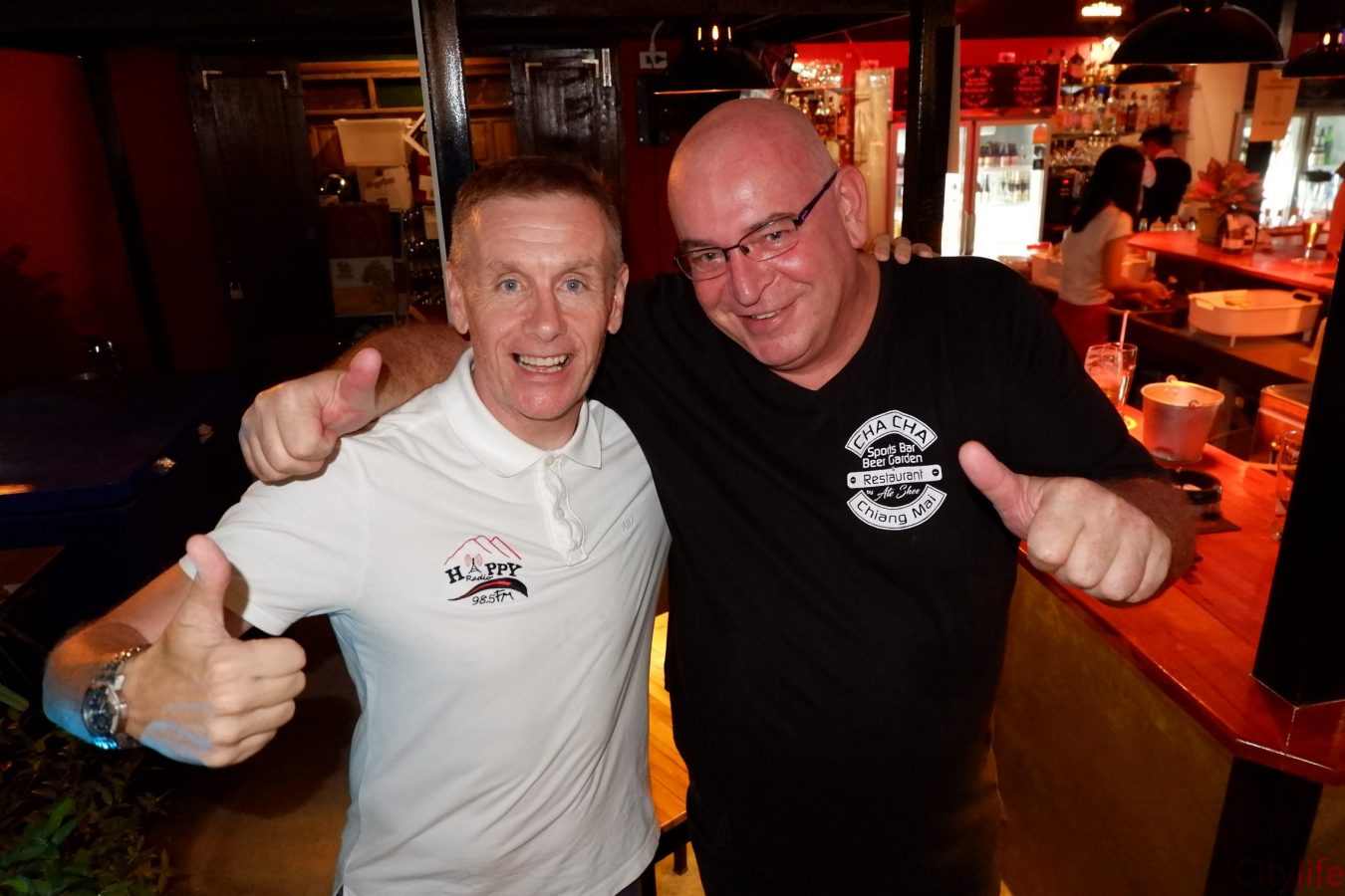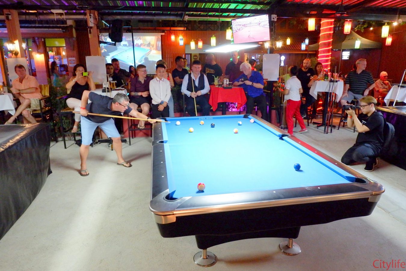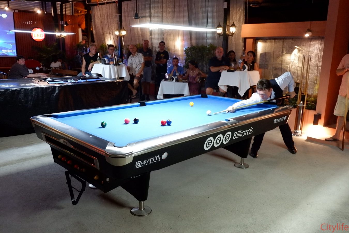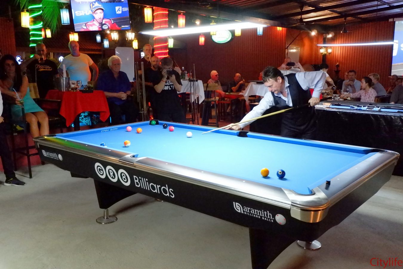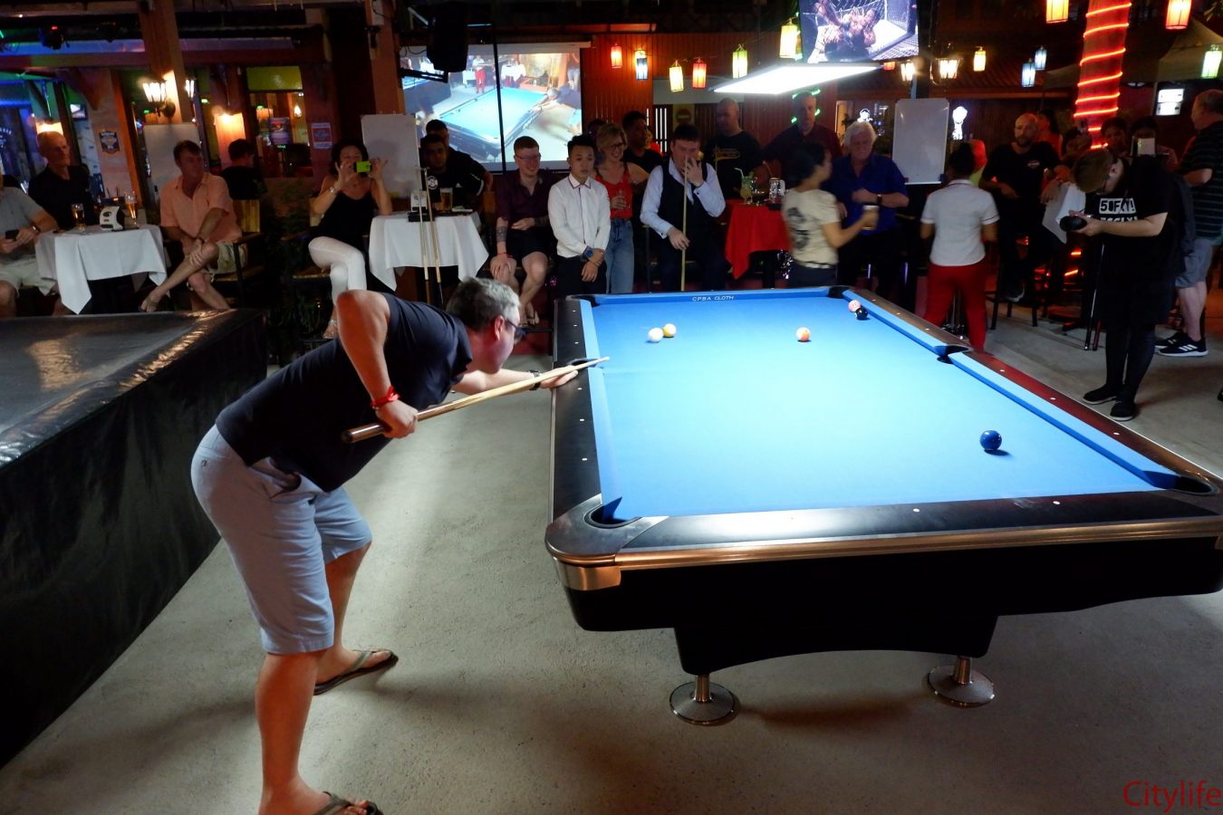 Jimmy ‘The Whirlwind’ White exhibition at Cha Cha Sports Bar & Restaurant. This first of a kind event for Chiang Mai saw 28 local residents got to play against Jimmy White. The event was MC’d by Steve Johnston from Happy Chili Radio Station FM98.5.
