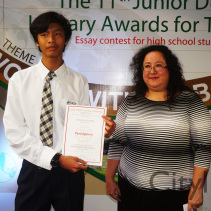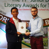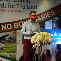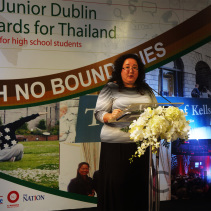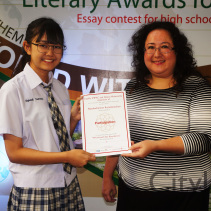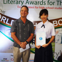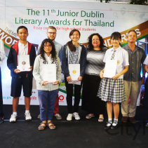 The winners for Northern Thailand at the 11th Annual Junior Dublin Literary Awards For Thailand at Citylife Office. The competition is an essay contest for high school students. The winner was Linda Michel, Nakorn Payap International School with The Fool. 2nd place went to Natanin Rachapradit, Naresuan University Secondary Demonstration School with A World with No Boundaries Inferno or Paradise. 3rd place went to Kan Jitpakdi-Ryu, Varee Chiang Mai International School with World with no Boundary, The winner competes in the national finals in Bangkok and then the winner of the finals goes to Dublin Ireland for the international final. Both the top two essays will appear in Citylife magazine in the next few months.