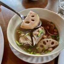 Examples of menu: Beef Rendang 250 thb / Santol curry with shrimp 250 thb / Authentic Thai curry spareribs cooked with Bolo Maka and Salacca 250 thb / Penang curry with pork 180 thb / Lotus root, peanut & pork ribs soup 180 thb / Nasi Lemak Ayam Goreng 260 thb / Nasi Lemak & Otak-otak 240 thb / Filipino Grilled Fish 320 thb / Southern Curry grilled sea bass 120 thb / Deep-fried golden pomfret with garlic 350 thb and much more besides…