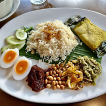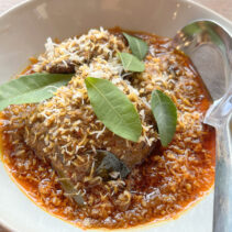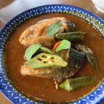 Examples of menu: Beef Rendang 250 thb / Santol curry with shrimp 250 thb / Authentic Thai curry spareribs cooked with Bolo Maka and Salacca 250 thb / Penang curry with pork 180 thb / Lotus root, peanut & pork ribs soup 180 thb / Nasi Lemak Ayam Goreng 260 thb / Nasi Lemak & Otak-otak 240 thb / Filipino Grilled Fish 320 thb / Southern Curry grilled sea bass 120 thb / Deep-fried golden pomfret with garlic 350 thb and much more besides…