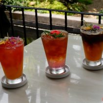 There is a coffee shop and bakery with Khum Hom coffee: coffee orange and peach 140 baht / dirty coffee 110 baht / Americano Honey & lemon 105 baht.
