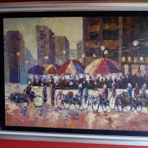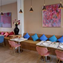 An art gallery is upstairs with an exhibition which changes every couple of months