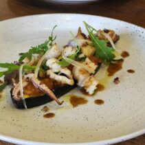 Chicken breast tarragon, onion, egg plant, tomato “escalivada”