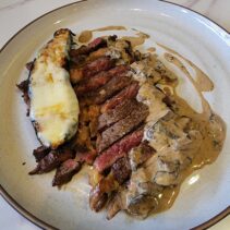 Black Angus beef ribeye, egg plant gratin