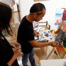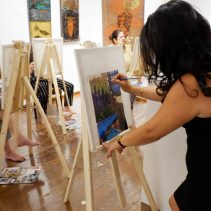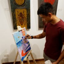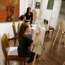 Wine & Paint Test Night at La Luna Gallery, Charoenrat Road.
