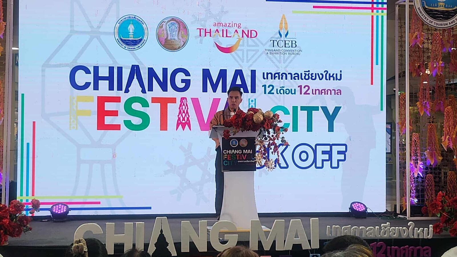 On Monday, September 22, 2025, at 6:00 PM, the Chiang Mai Provincial Tourism and Sports Office organized the “Chiang Mai Festival City: 12 Months, 12 Festivals” kick-off event at Central Festival Chiang Mai. Mr. Weeraphong Ritrod, Deputy Governor of Chiang Mai Province, presided over the ceremony, and Mr. Itthirat Sinarak, Chiang Mai Provincial Tourism and Sports Officer, gave the opening speech. The event aims to raise awareness of creative tourism under the “12 Months, 12 Festivals” campaign under the “Elevate Chiang Mai as a Creative City with Soft Power” project, a key mechanism supporting Chiang Mai’s path to becoming a “World Festival Destination.” This event not only raises tourism awareness but also extends soft power through Lanna culture, traditions, and way of life, presented in a contemporary format. This aims to attract tourists to visit all seasons, 365 days a year.