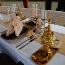 Blending unique Thai design with the beauty of the historic Mae Ping River the ‘Dibba Yana Chitta’, or ‘Heavenly Boat’ is designed by acclaimed Thai National Artist, Ajarn Chalermchai Kositpipat, known worldwide for his famous ‘White Temple’ in Chiang Rai, which draws over a million visitors from around the globe each year. One of Thailand’s most popular contemporary artists, Ajarn Chalermchai was named Thailand’s National Artist of the Year in 2011 in lifelong recognition of his work. His latest design is inspired by series of paintings named ‘Dibba Yana Chitta’. The boat’s design depicts the journey from this world to the next and the vessel’s figurehead has been hand-carved into a mythical creature, symbolising the transport of humans along the river to heaven.