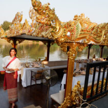 Blending unique Thai design with the beauty of the historic Mae Ping River the ‘Dibba Yana Chitta’, or ‘Heavenly Boat’ is designed by acclaimed Thai National Artist, Ajarn Chalermchai Kositpipat, known worldwide for his famous ‘White Temple’ in Chiang Rai, which draws over a million visitors from around the globe each year. One of Thailand’s most popular contemporary artists, Ajarn Chalermchai was named Thailand’s National Artist of the Year in 2011 in lifelong recognition of his work. His latest design is inspired by series of paintings named ‘Dibba Yana Chitta’. The boat’s design depicts the journey from this world to the next and the vessel’s figurehead has been hand-carved into a mythical creature, symbolising the transport of humans along the river to heaven.