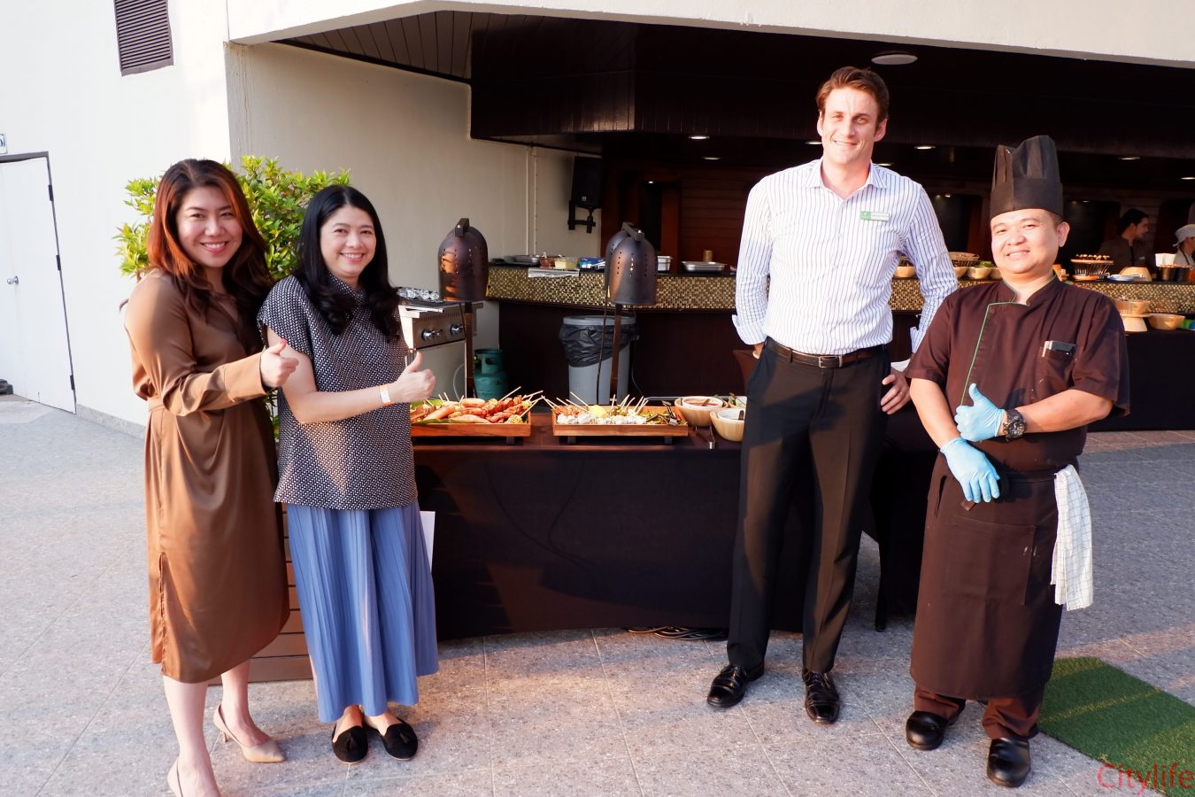 Local media were invited to the launch of the Poolside BBQ at Holiday Inn, open daily from 4pm until 8pm. On the BBQ there is Cumberland sausages, marinated pork, chicken, prawn skewers with American BBQ sauce, fish fillet with aromatic herbs + a salad bar + dessert table which includes cakes and ice cream, chocolate brownies and tropical fruit: unlimited for 450 THB per person (food only). For reservations or further info call 053-275-300