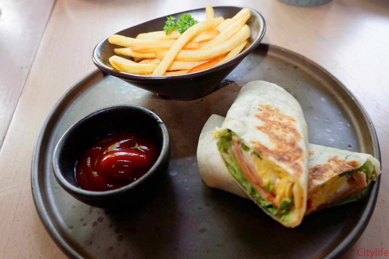 Order one main course: includes free flow drinks include Americano (hot/cold), Latte (hot/ cold), milk shake: vanilla / chocolate/ coke sprite / water