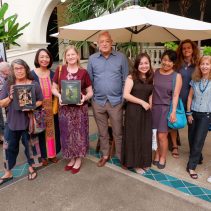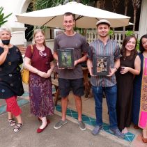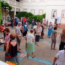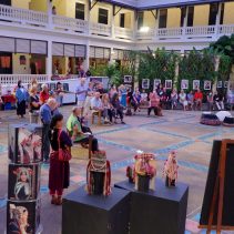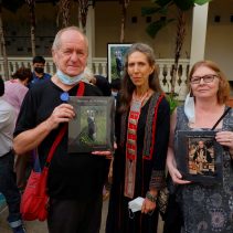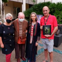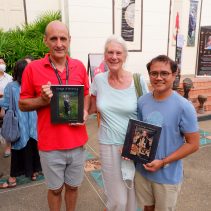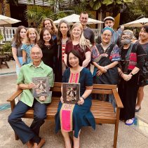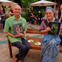 Book Launch of Expanded New Edition: Songs of Memory Book and Recordings By Victoria Vorreiter. Supermoon Launch and Reception at Chiang Mai Arts and Cultural Center Three King Monument Courtyard. Hot off the press, this brand new edition is illustrated with over 800 photographs and brought to life with a flash drive of age-old secular and sacred music (78 minutes). Victoria Vorreiter explained to guests “documented over two decades, this comprehensive, vibrant account captures the celebratory songs, sacred chants, and instrumental music that are quickly and quietly disappearing. It is a joy to share with you this one-night display of photos, instruments, textiles, and traditional music to celebrate the cultural wonders of the Golden Triangle”.