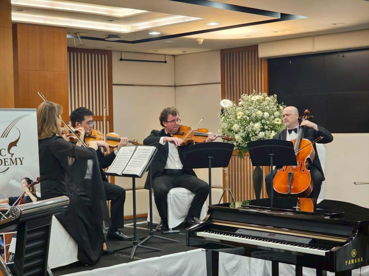The audience was able to experience the artistry of the Libere String Quartet from Mahidol University’s College of Music alongside gifted Music Scholars from Prem Tinsulanonda International School, as they bring to life the timeless works of Bach, Mozart, Shostakovich, and Haydn. Featuring: Dr. Mahakit Leardcheewanan Marcin Tomasz Szawelski Daniel Keasler Inga Causa With performances by Music Scholars Meiyu Gong (Cello) and Puri Puengpipattrakul (Piano).