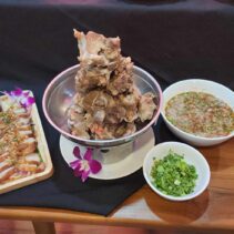 Specialities are Som Tam and spicy salad, focusing on fresh ingredients such as shrimp, oysters, crab, fish and local products.