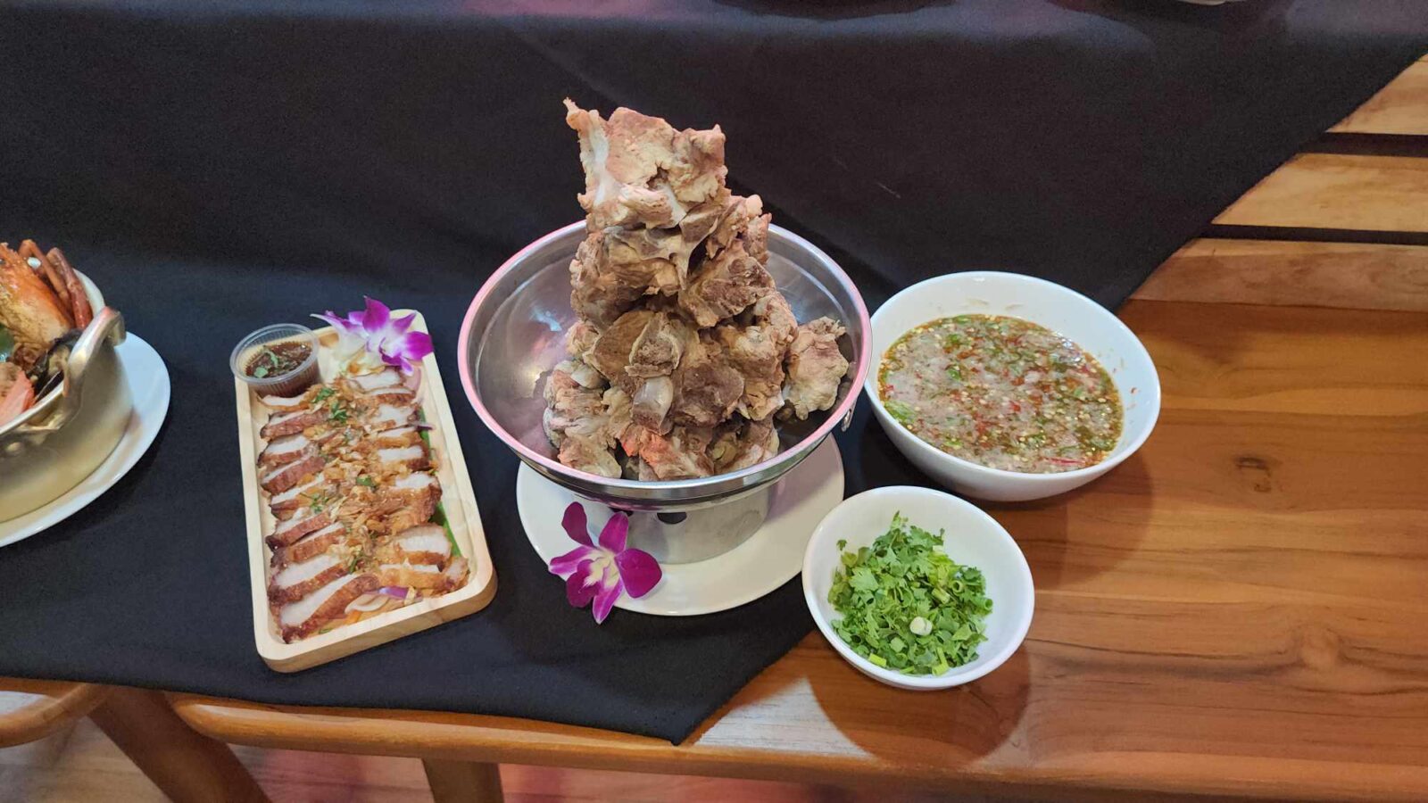 Specialities are Som Tam and spicy salad, focusing on fresh ingredients such as shrimp, oysters, crab, fish and local products.
