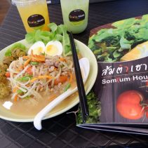 Local media were invited to sample the food at Somtum House Yokkrok at JJ Markets on Atsadathorn Road. Open from 10.30 until 8pm every day ( restaurant closes at 9pm) No MSG. The owner concentrates on “a healthy menu with the freshest ingredients available”. There are 37 different Somtum’s on the menu: Jaa from Citylife recommends the Tom Yam Goong, Pooh from Chiang Mai Events likes Som Tam with noodles, Lek from Compass prefers the crab salad. During March there is a 15% discount in March if you like and share, alternatively there is a membership available and you get 20% discount. For further information or reservations call 094-629-1596