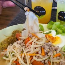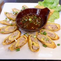 Tum Sua Kab – Moo Pla – Raa (Rolled Rice Noodle Salad with Kab-Moo in Pickled Fish Flavor) 79 THB