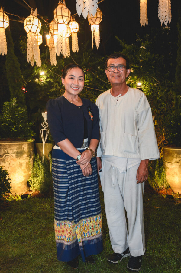 Loy Krathong at Le Crystal. The dinner included the opening of an exhibition of the Royal Portraits of Her Majesty Queen Sirikit, The Queen Mother. The exhibition also features a stunning collection of Thai textile designs created by leading Chiang Mai designers. These exquisite works are inspired by Her Majesty’s lifelong dedication to promoting Thai fabrics and traditional attire to the world and are presented as a heartfelt tribute in remembrance of Her Majesty, and will continue to be on display. at Le Crystal Restaurant, Chiang Mai, Guests are warmly invited to visit and admire the beauty of this exhibition while enjoying fine French cuisine in Le Crystal’s elegant riverside garden, accompanied by soothing live jazz music—creating an evening filled with warmth, artistry, and inspiration from now until November 30, 2025.