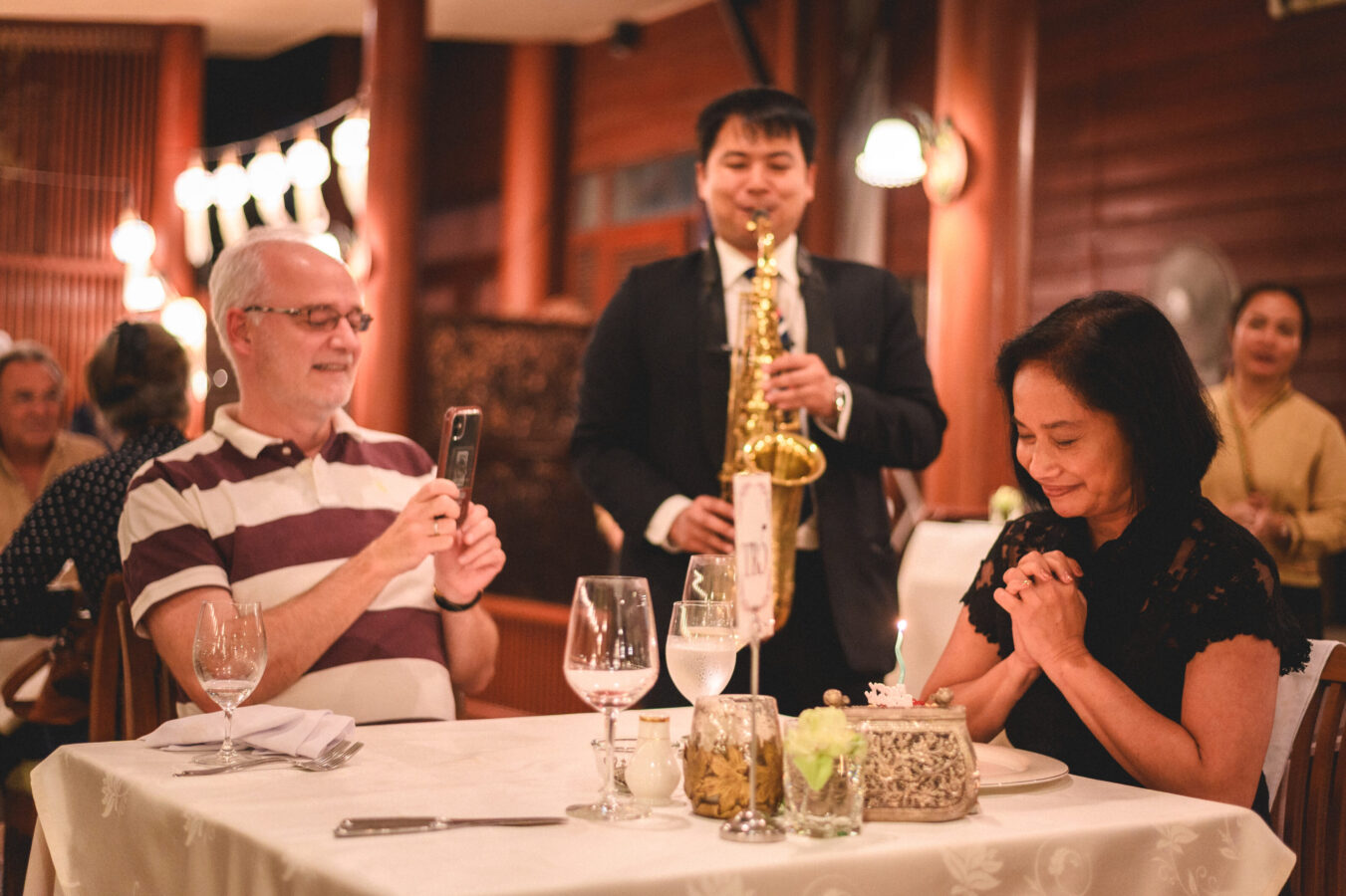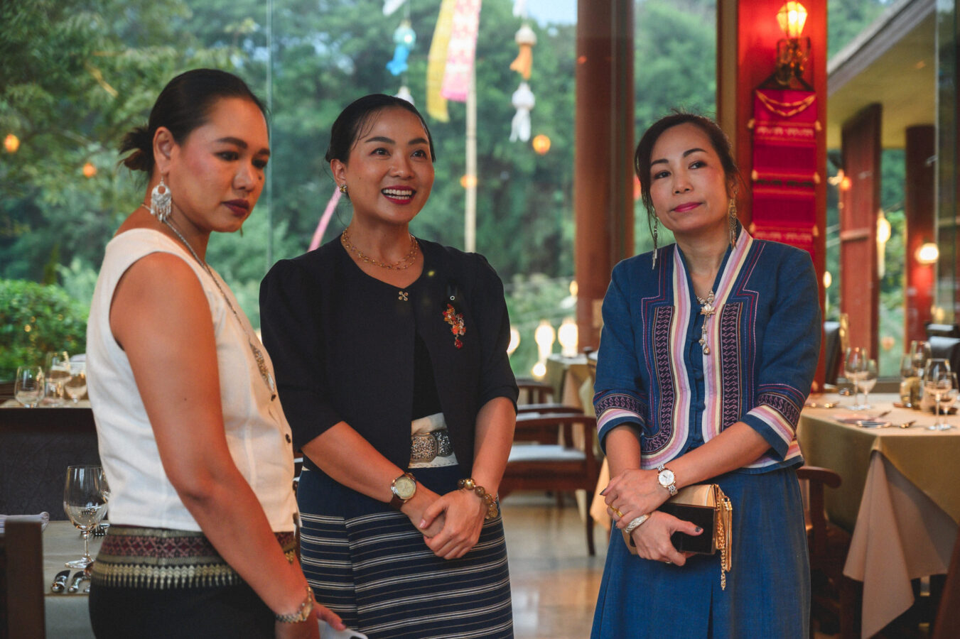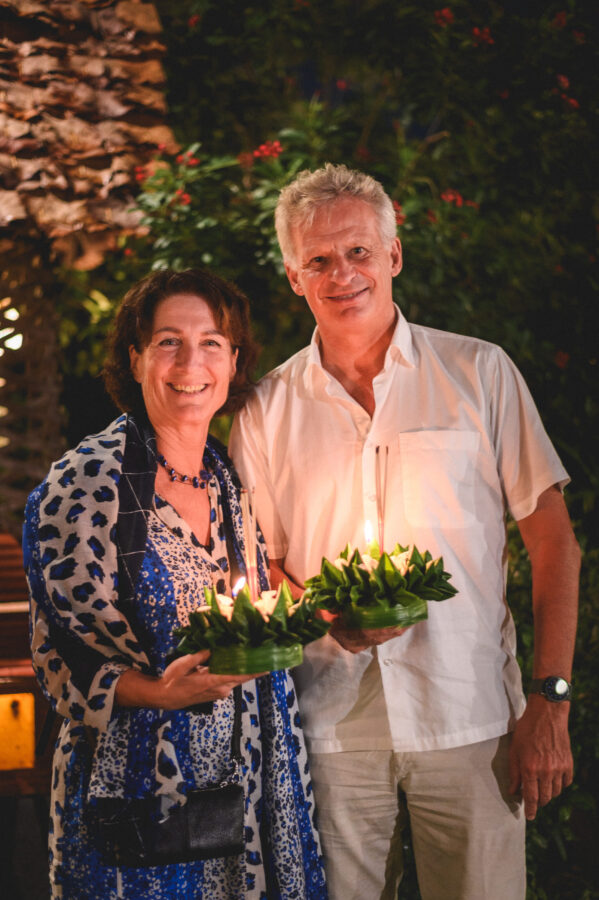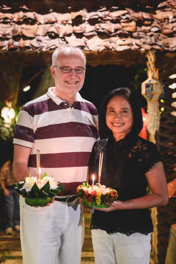 Loy Krathong at Le Crystal. The dinner included the opening of an exhibition of the Royal Portraits of Her Majesty Queen Sirikit, The Queen Mother. The exhibition also features a stunning collection of Thai textile designs created by leading Chiang Mai designers. These exquisite works are inspired by Her Majesty’s lifelong dedication to promoting Thai fabrics and traditional attire to the world and are presented as a heartfelt tribute in remembrance of Her Majesty, and will continue to be on display. at Le Crystal Restaurant, Chiang Mai, Guests are warmly invited to visit and admire the beauty of this exhibition while enjoying fine French cuisine in Le Crystal’s elegant riverside garden, accompanied by soothing live jazz music—creating an evening filled with warmth, artistry, and inspiration from now until November 30, 2025.