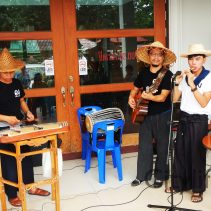 To celebrate the 10th Anniversary of NorthgateJazz Co-Op, Pharadon Phonamnaui led a group of residents cleaning around Wat Prasat. Pictures taken during the lunch meeting where people were invited to choose which trees would be planted. This was followed by lunch listening to local and Jazz Music