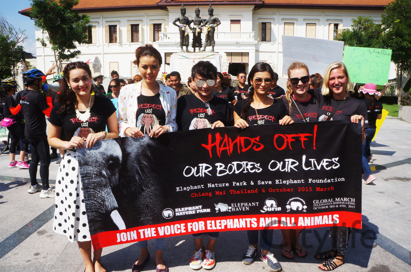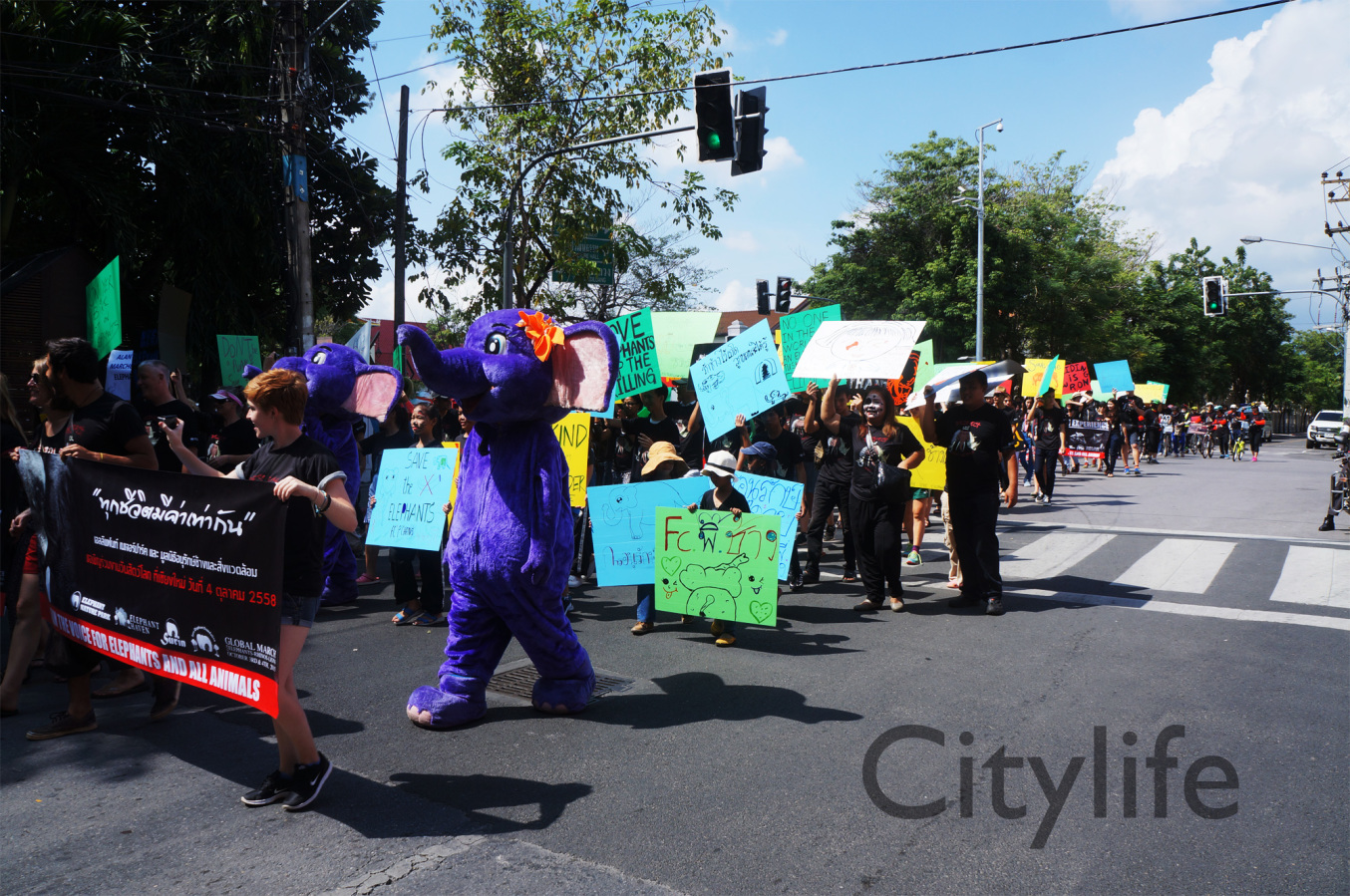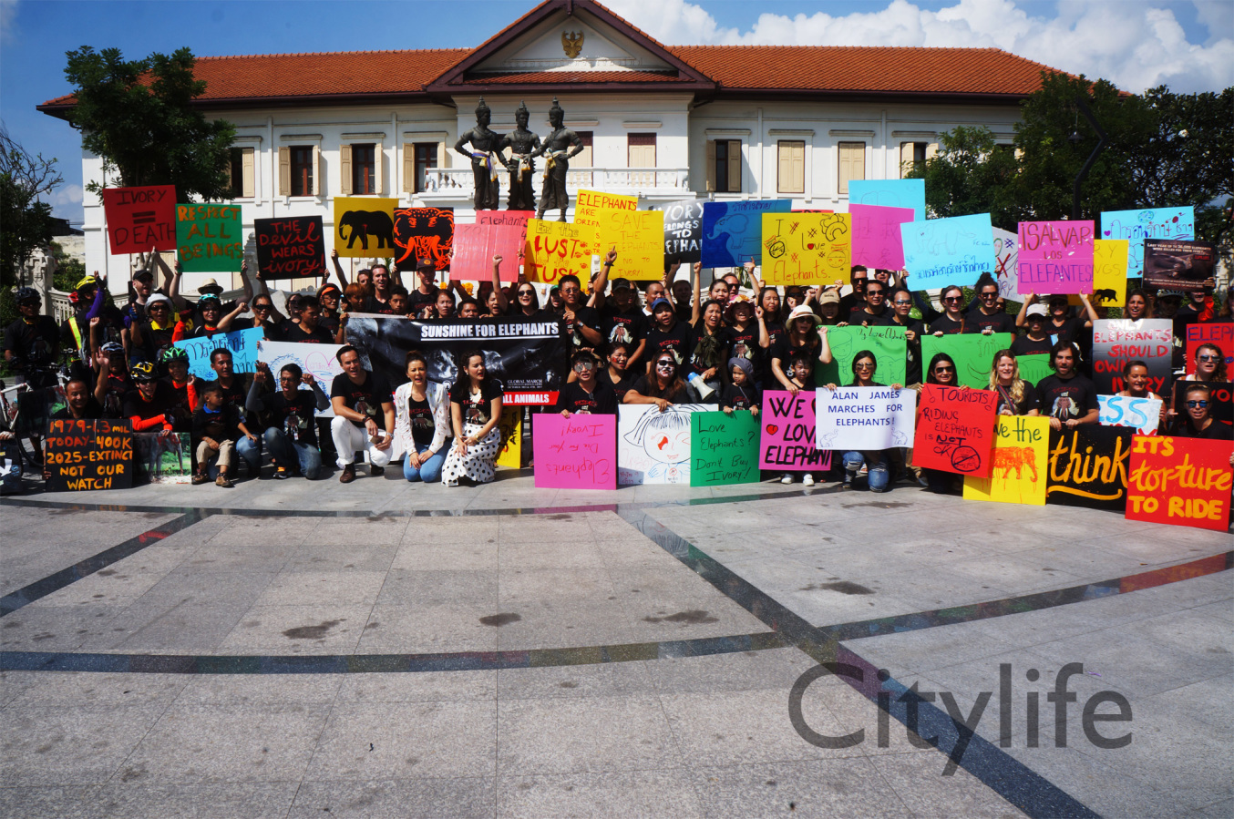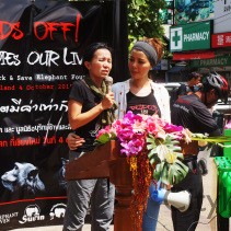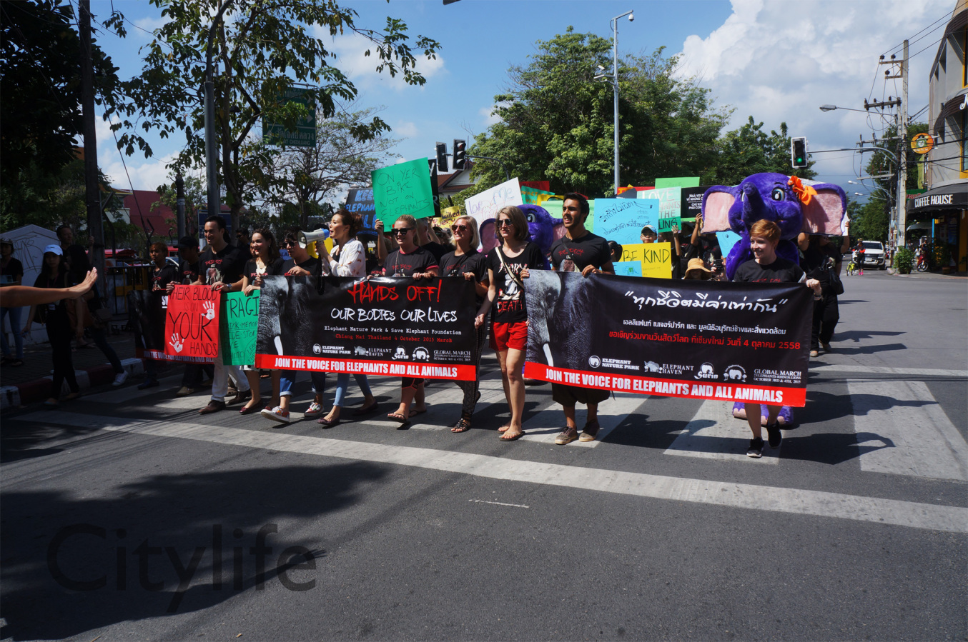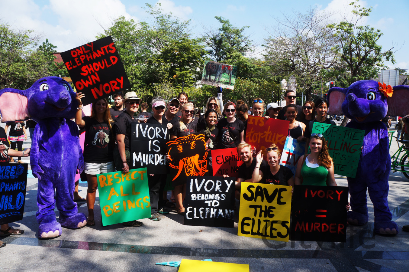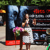 As part of the International World Animal Day, Chiang Mai people held a March from Three Kings Monument to Thapae Gate to raise awareness of the plight of Elephants in Thailand and around the world. Over 150 countries took part in World Animal Day.