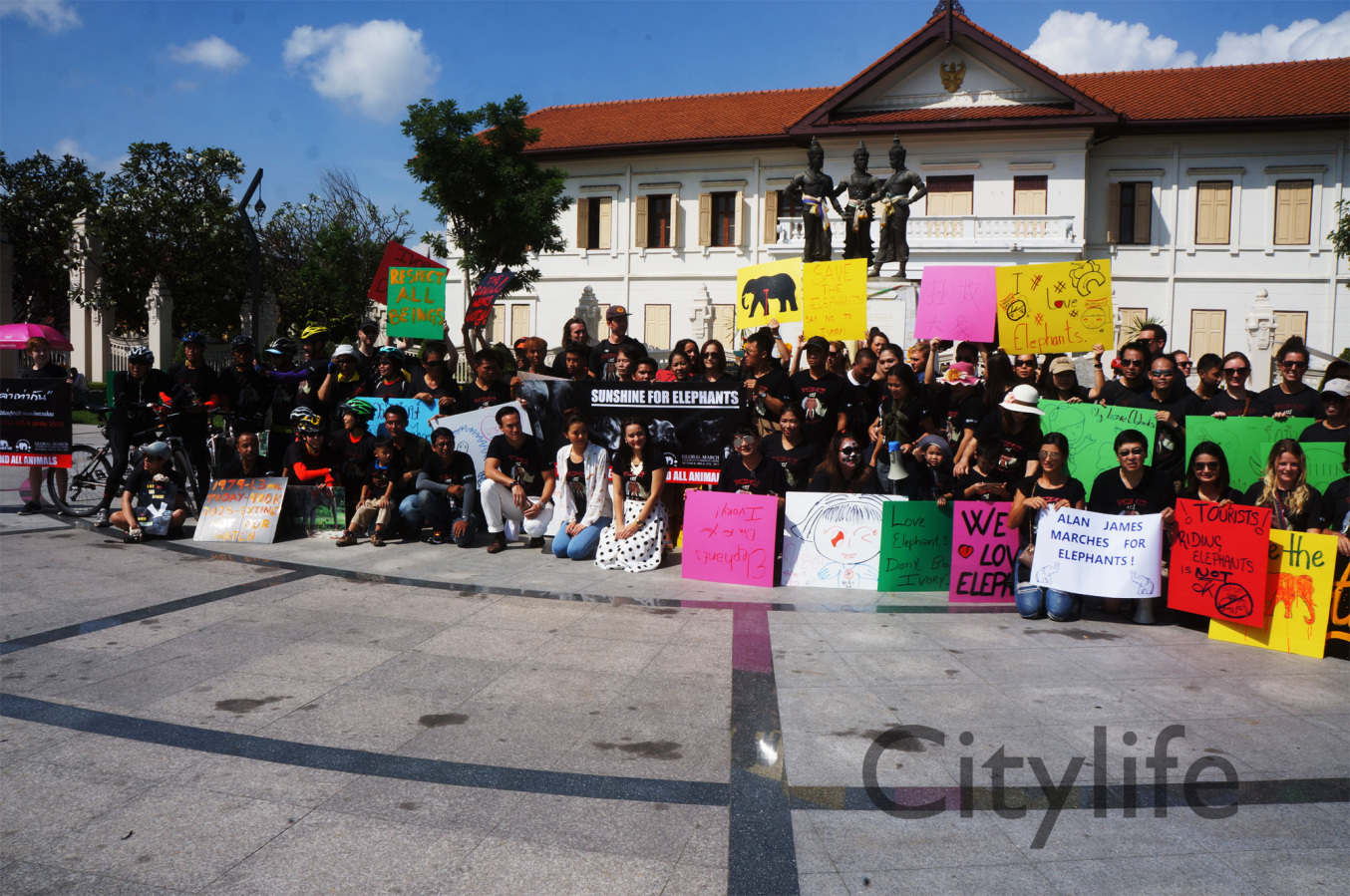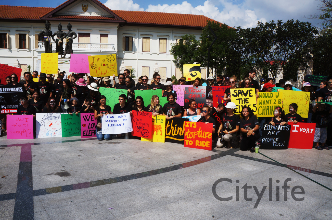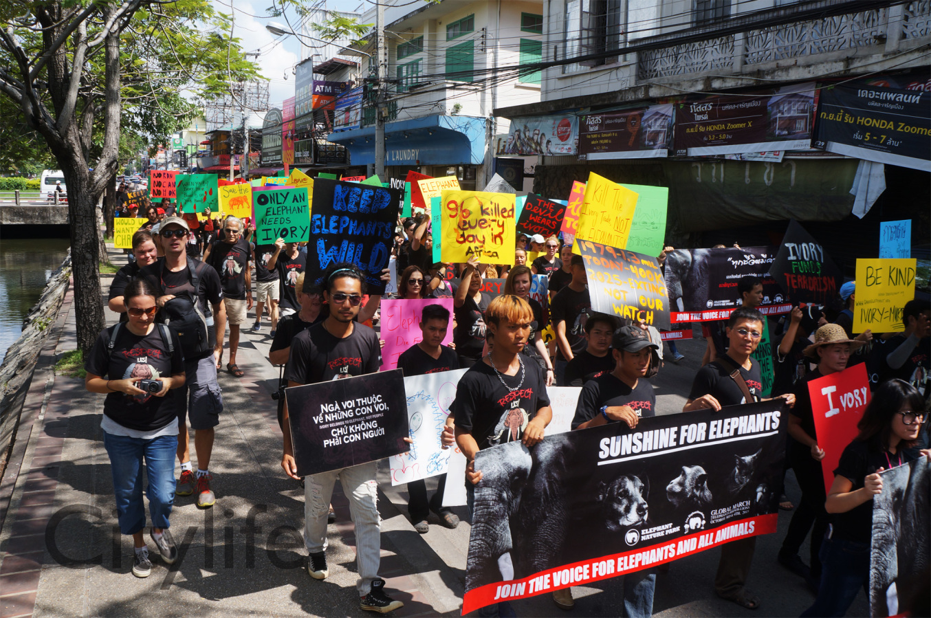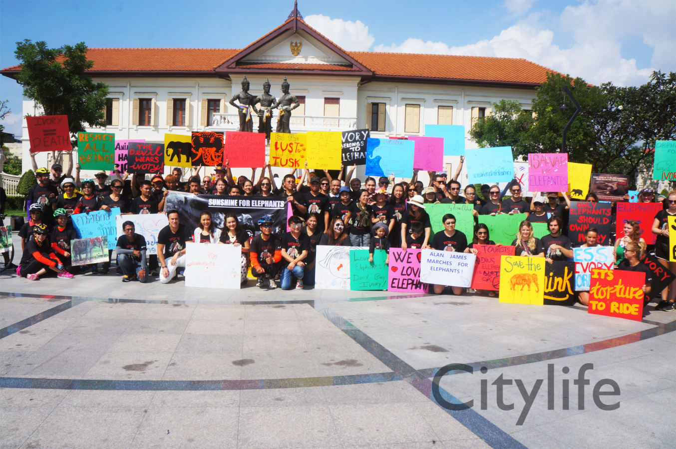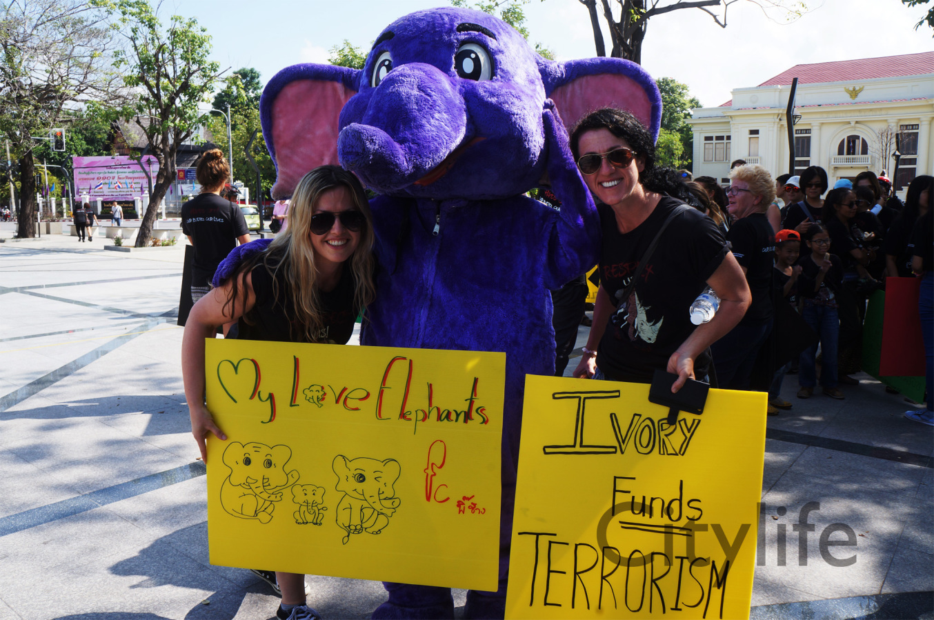 As part of the International World Animal Day, Chiang Mai people held a March from Three Kings Monument to Thapae Gate to raise awareness of the plight of Elephants in Thailand and around the world. Over 150 countries took part in World Animal Day.