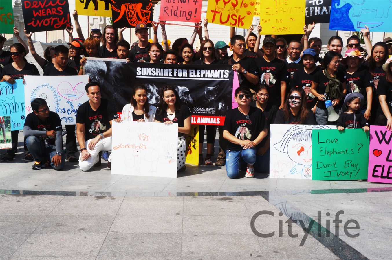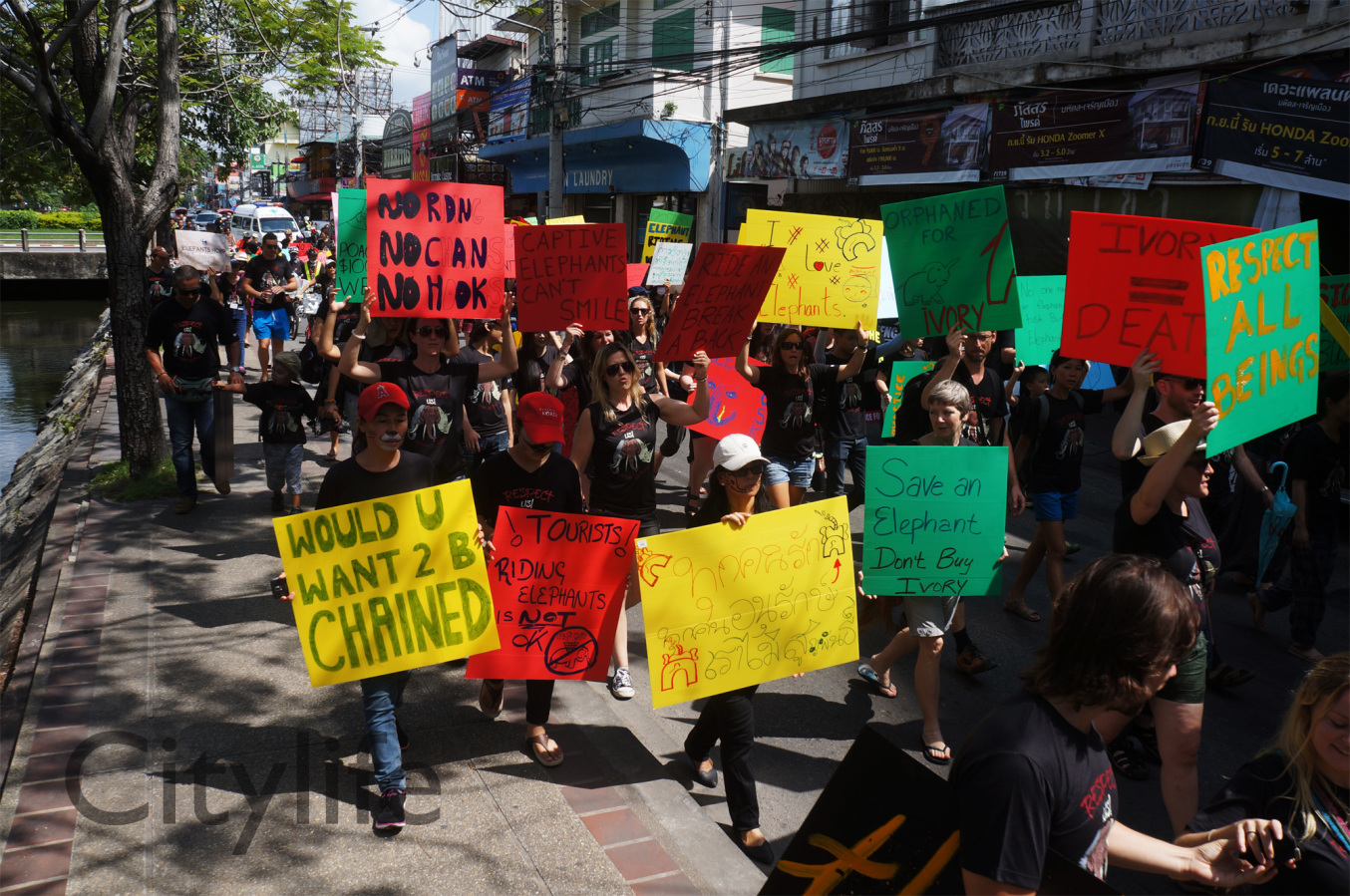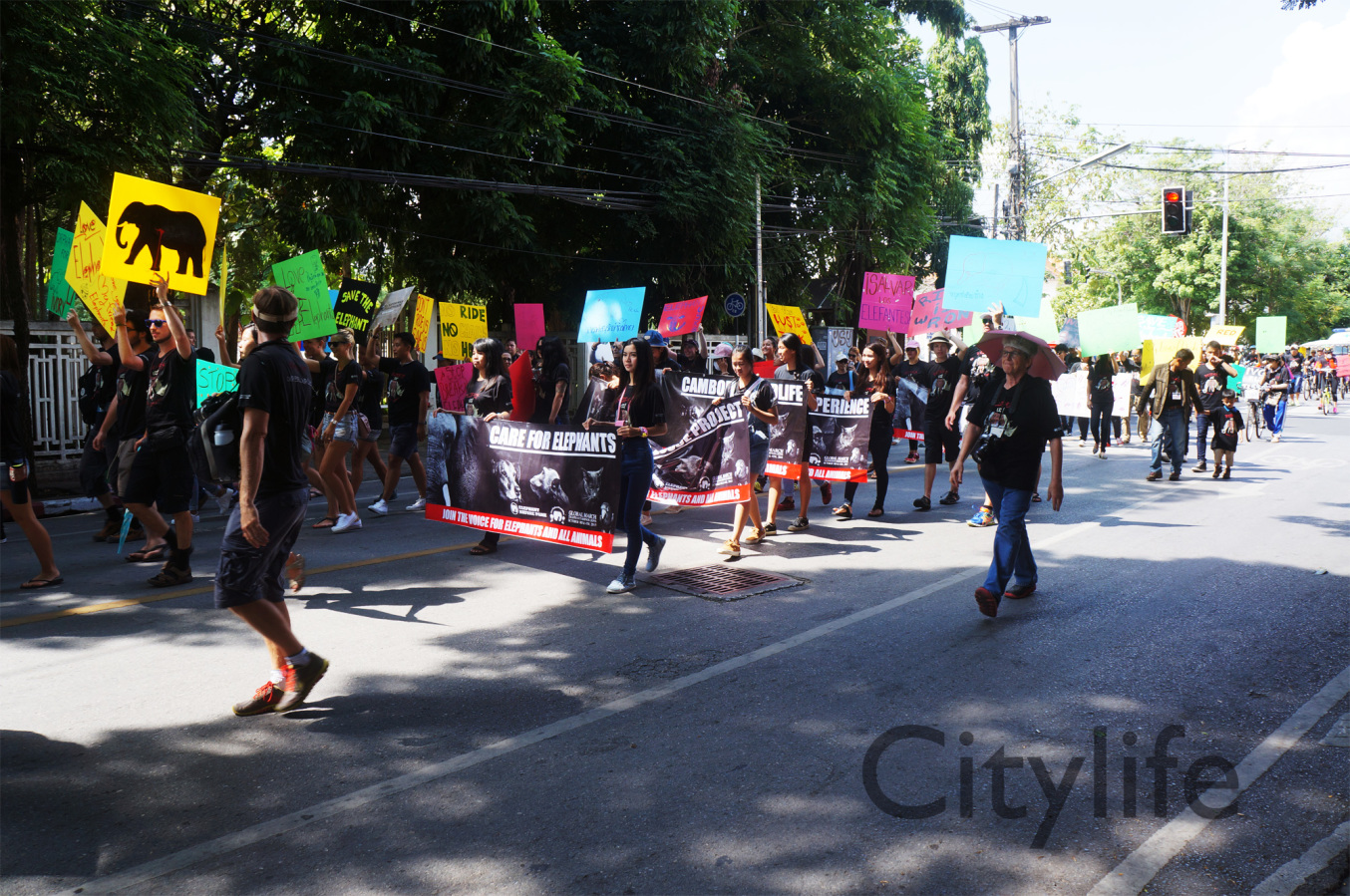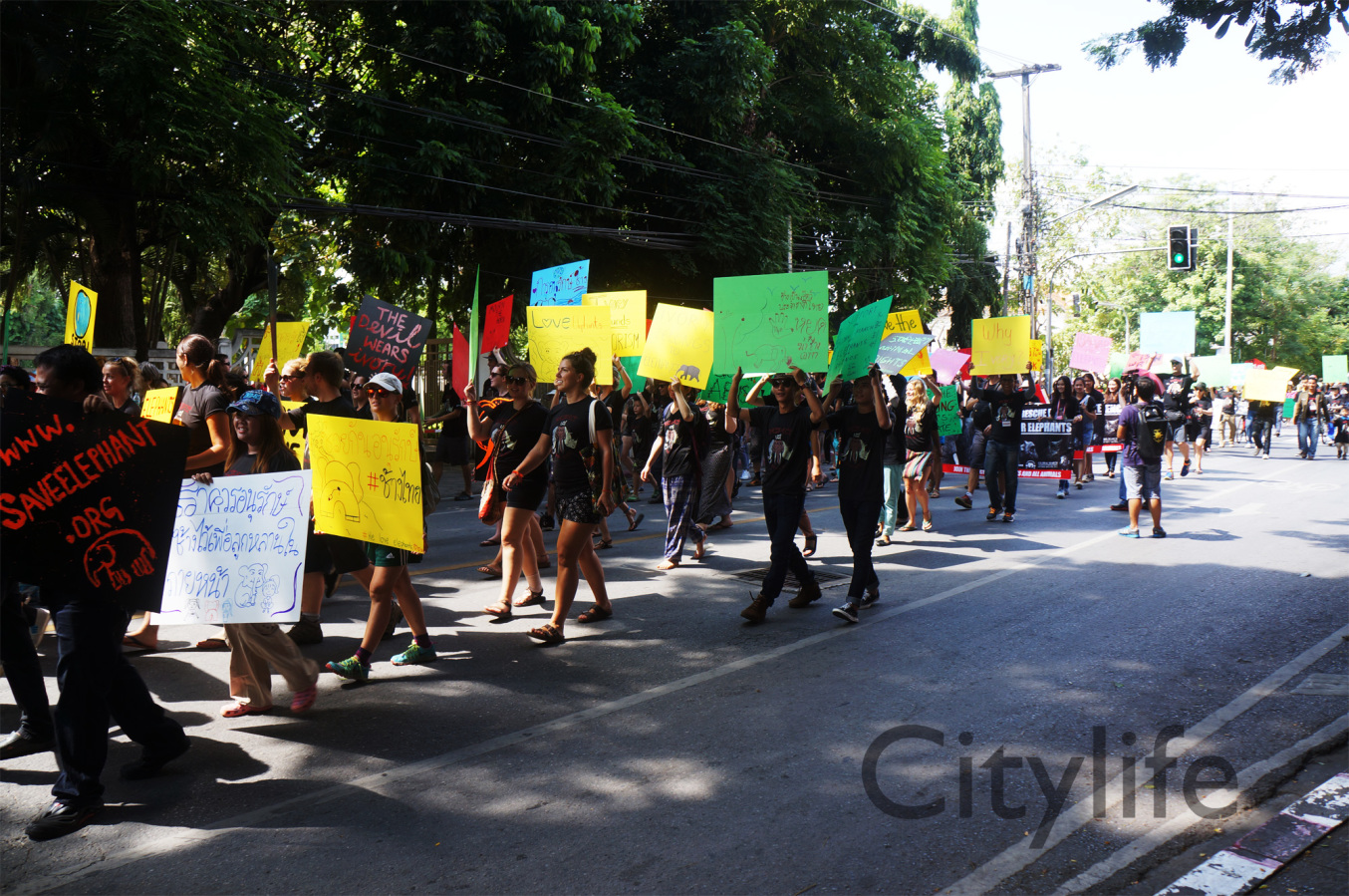 As part of the International World Animal Day, Chiang Mai people held a March from Three Kings Monument to Thapae Gate to raise awareness of the plight of Elephants in Thailand and around the world. Over 150 countries took part in World Animal Day.