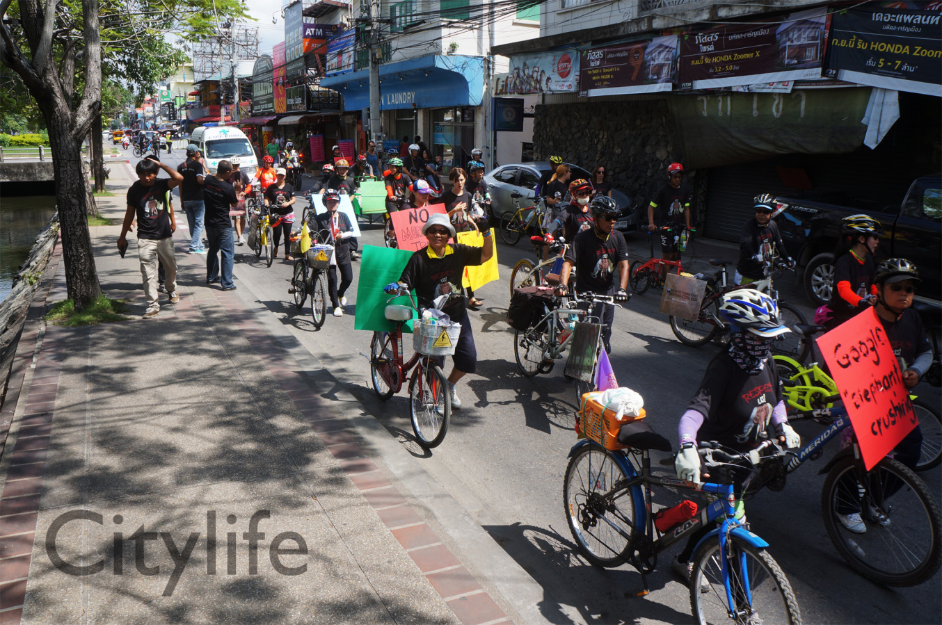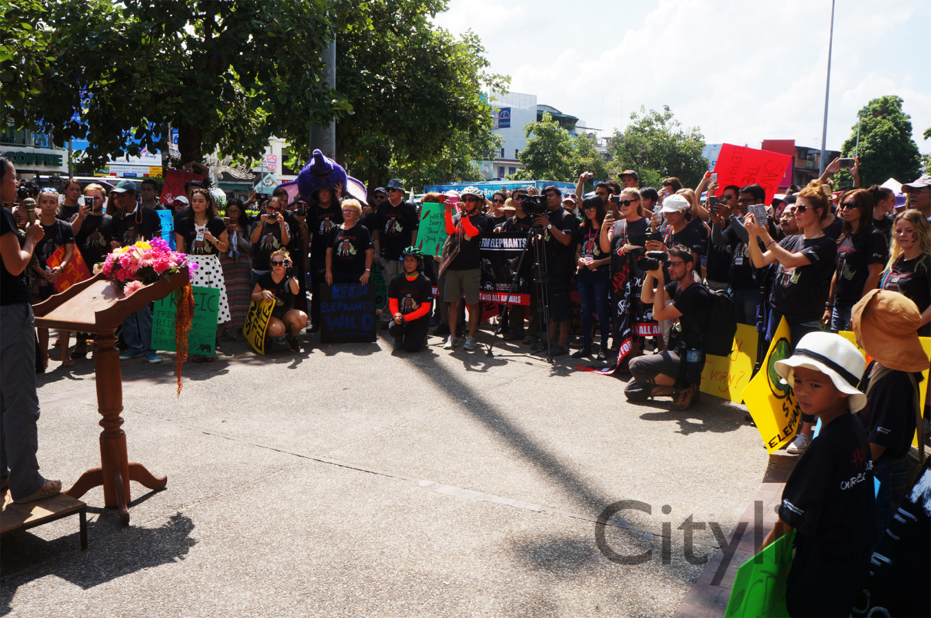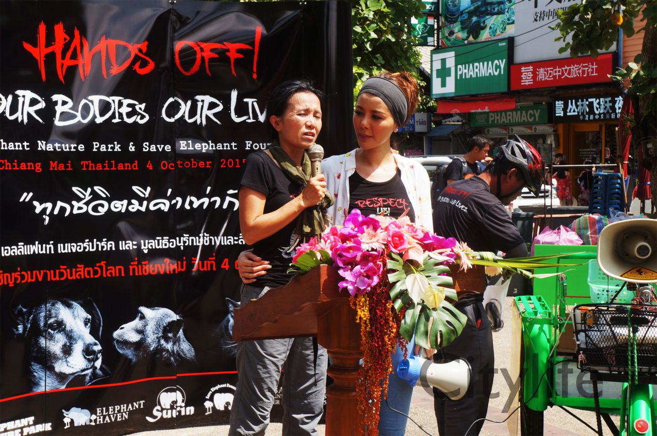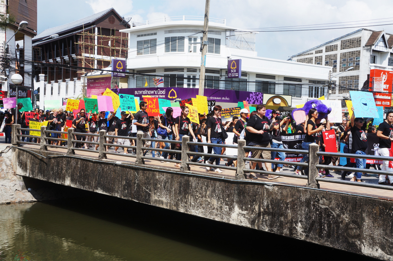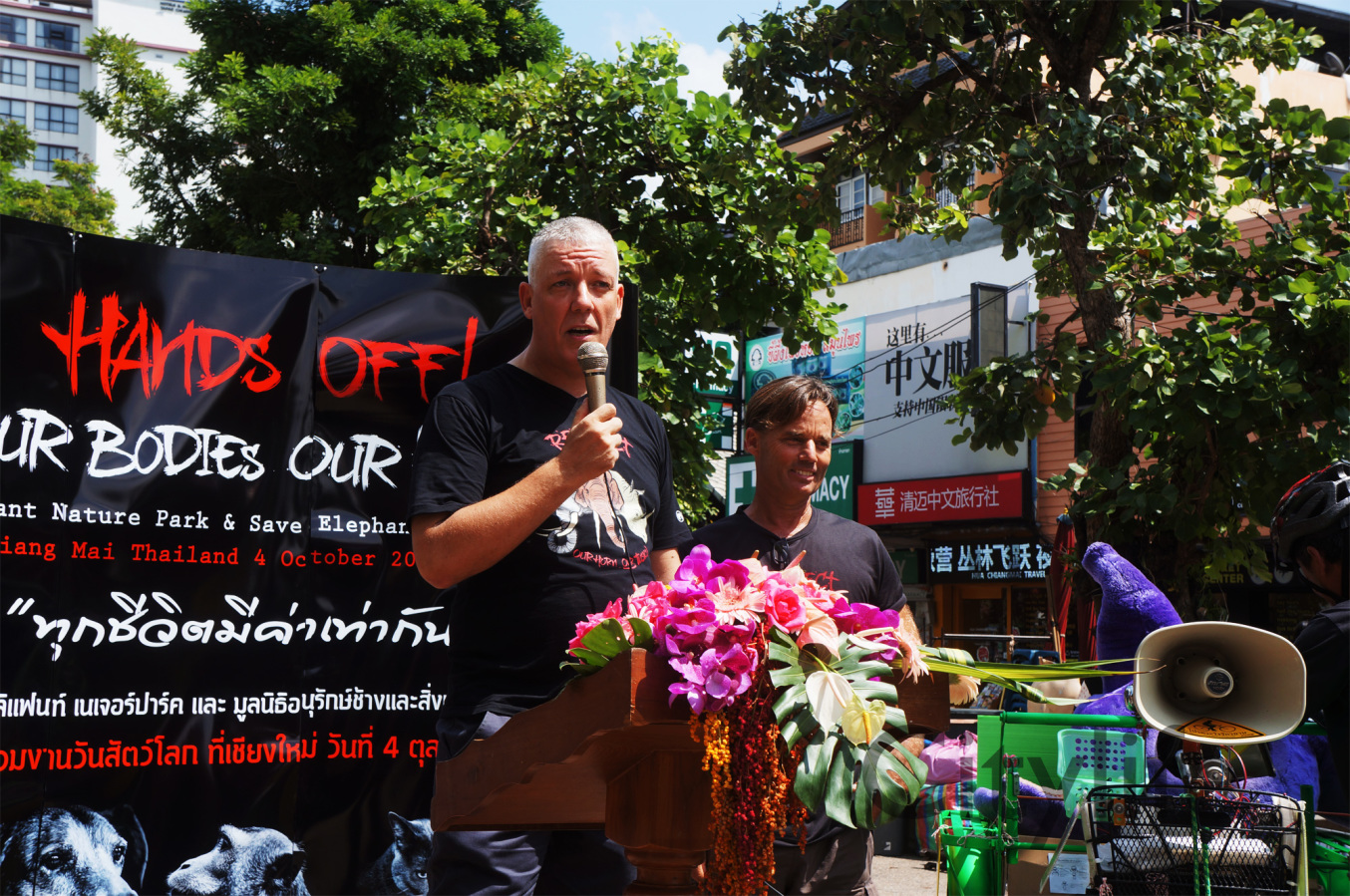 As part of the International World Animal Day, Chiang Mai people held a March from Three Kings Monument to Thapae Gate to raise awareness of the plight of Elephants in Thailand and around the world. Over 150 countries took part in World Animal Day.