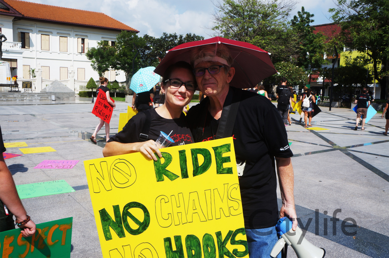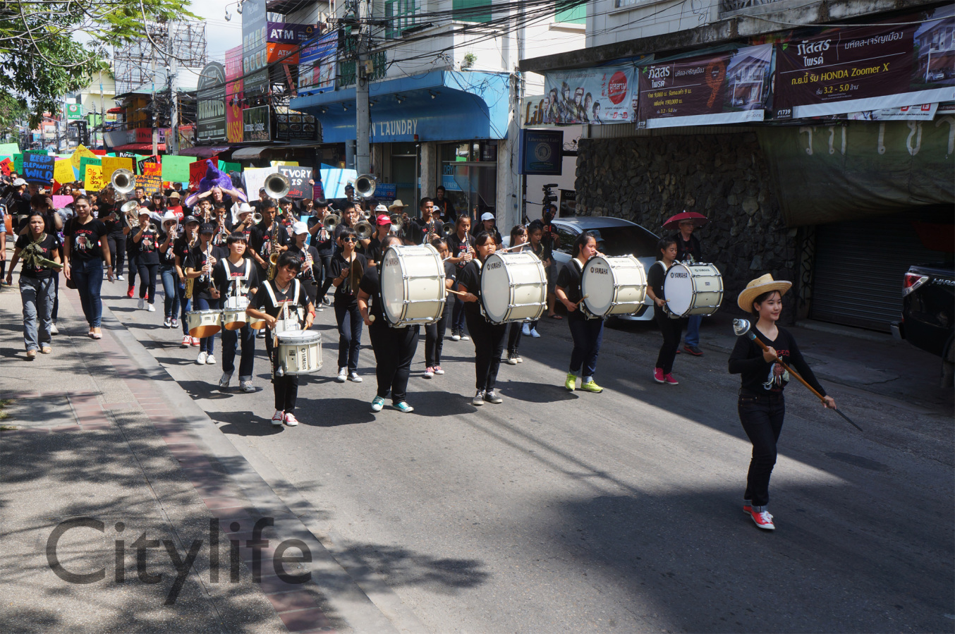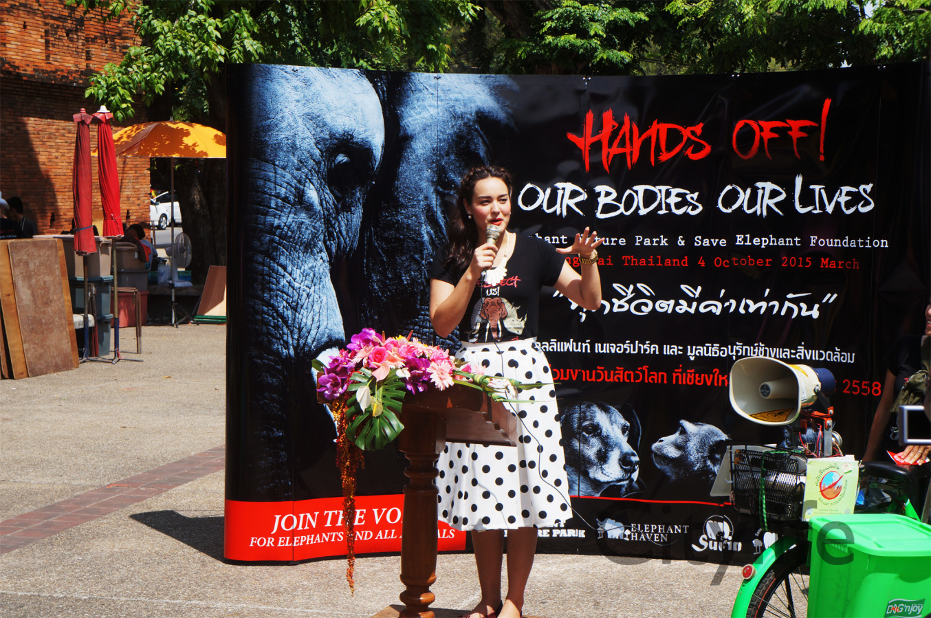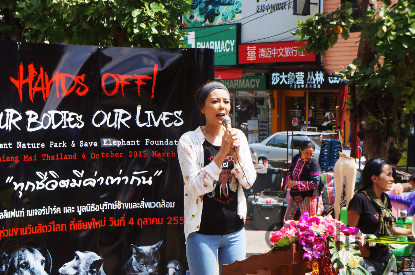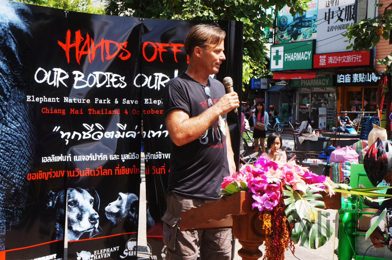As part of the International World Animal Day, Chiang Mai people held a March from Three Kings Monument to Thapae Gate to raise awareness of the plight of Elephants in Thailand and around the world. Over 150 countries took part in World Animal Day.