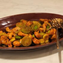 Fried Eggplant and green bean in oyster sauce 180 THB