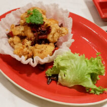 Wok Fried Prawns with Walnuts and Ginger Garlic Sauce 320 THB
