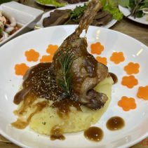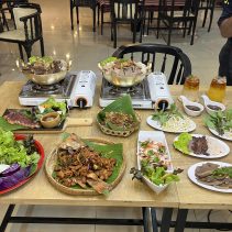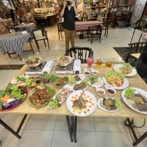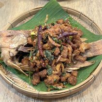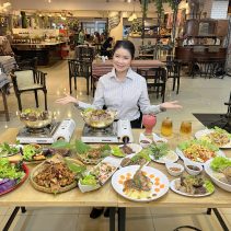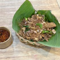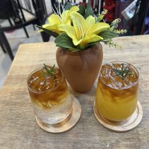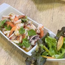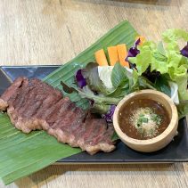 Examples from the menus: Baan-Suan :Beef Soup Hot Pot 180 THB / Braised Beef with Rice 59 THB / Noodles with Pork 65 THB // Lao Duang- Duan: Shrimp or seafood with hot basil on rice 79 THB / Grilled Pork Neck with Spicy Sauce 119 THB / Fried Salmon Belly 129 THB / Minced Pork Omelette 70 THB / Thai Chicken Coconut Soup (Tom Kha Gai) 129 THB / Spicy Squid Salad 129 THB // Together Cafe: Pineapple Smoothie 69 THB / Mango Smoothie Yogurt 69 THB / Chicken Nuggets 99 THB / Mussels Baked Cheese 189 THB / Chang Beer 80 (s) 120 (l) Heineken 90 (s) 140 (l) and much more besides…
