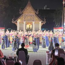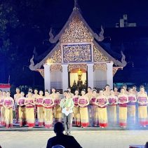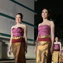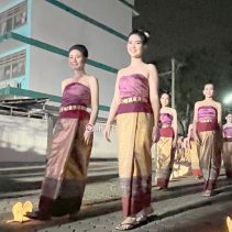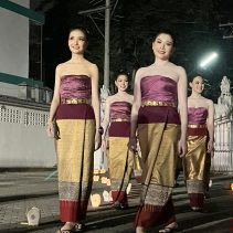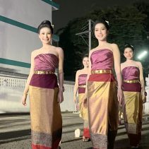 The contestants of Miss Songkran 2023 paraded in traditional Thai dress in front of the judges at Wat Si Don Chai.