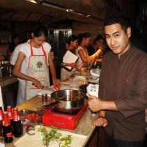 Molecular Dessert Cooking Class at the Anantara Resort & Spa with Michelin Chef Roger van Damme from Belgium – one of the world’s greatest patissiers. This highly exclusive culinary class consisted of three desserts 1. Chocolate egg white mousse 2. Chocolate lactee espuma 3.Chocolate sponge cake. During his stay in Chiang Mai Chef Roger van Damme will prepare a Fine Dining Western Dinner at the Anantara on Friday 10 April, followed by a Fine Dining Asian Dinner also at the Anantara on Saturday 11 April. For further info or reservation 053-253-333 ext 0 or events.chiangmai@anantara.com