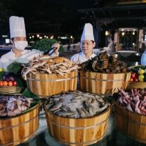 A New Year’s Gala dinner by Shangri-La Hotel Chiang Mai featuring various international dishes, live music, lantern floating, performances on stage, and fireworks welcoming the year of 2018.