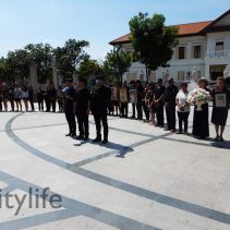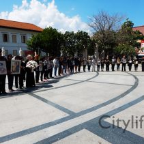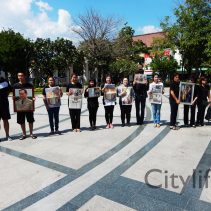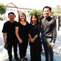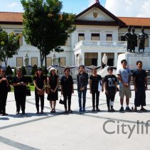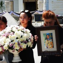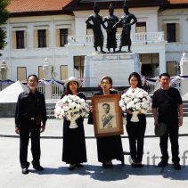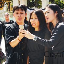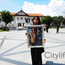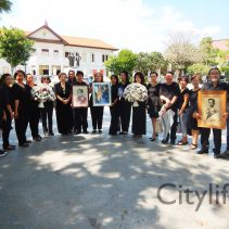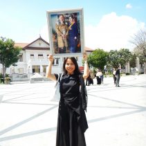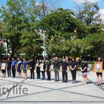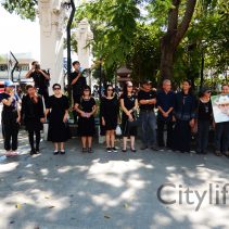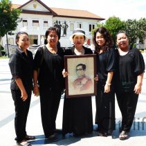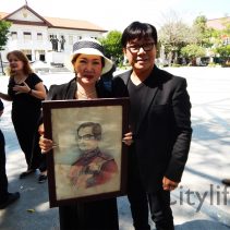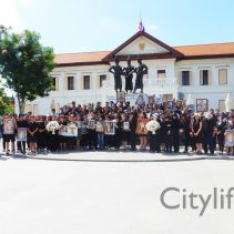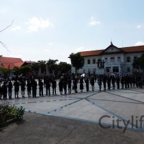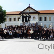 In coincidence with the National Anthem being played in Bangkok, people gathered at Three Kings Monument to sing the National Anthem in honour of H.M. The King