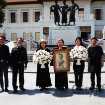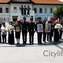 In coincidence with the National Anthem being played in Bangkok, people gathered at Three Kings Monument to sing the National Anthem in honour of H.M. The King