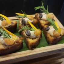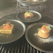 Beef Ponzu; grilled marinated beef rib-eye skewer’s leeks ponzu sauce 330 THB