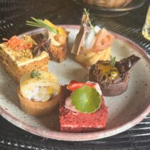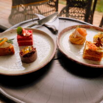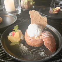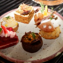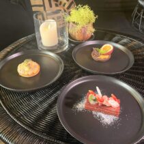 Pastry Delights such as; Cake Ueang Mai Na: Indian head ginger cake with mixed seasonal fruits 190 THB