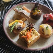 Little Bite such as; Punjabi Chicken: grilled marinated chicken Punjabi style with ginger-garlic, fresh coriander leaves, chili yogurt and tamarind sauce 280 THB