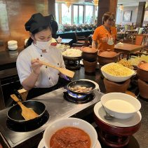 From 15 January 2023 the resort offers a new buffet with items such as rice balls, spaghetti, stewed pork ribs, dim sum, rice noodles with Nam Ngiao, plus a wide range of desserts and seasonal fruit. The menu changes every day to offer a variety for customers!.