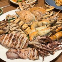 International Buffet Dinner has a vast array of food to choose from including a sizzling charcoal BBQ; charcoal grilled dishes include salmon steak, snapper steak, hamster steak, grilled squid, grilled shrimp. A Pasta station with a chef on hand to make that perfect Italian meal. A spicy salad station preparing freshly made dishes with spicy flavors, including salmon, shrimp, squid, blue crab, salted egg yolk, and mussels. For those who remember the spicy salad with fermented fish sauce, don’t miss it. It’s delicious for sure!. Local food will be selected for you and there will be appetizers of the city, Khao Soi and Kanom Jeen Nam Ngiao followed by a variety of homemade desserts. We especially spoil buffet lovers. According to the rules, they will rotate every day. You can stop by to eat every day without getting bored. . All You Can Eat !!