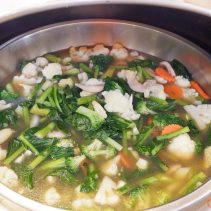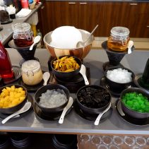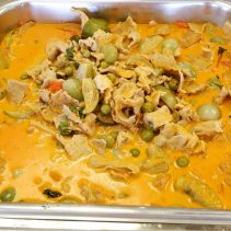 The menu consists of Singaporean, Thai and European food. Salad bar, main dishes such as Red curry with pork, chick bell pepper, grilled sausages, Bak Kut The, Hok Kien Mee, Lek Sa, Prawn Mee Soup and much more besides (changing most days). The special dessert is one of the highlights: Monday and Thursday honey toast with vanilla ice cream / Tuesday, Friday and Sunday brownie with vanilla ice cream / Wednesday and Saturday Crepe Suzette with vanilla ice cream.